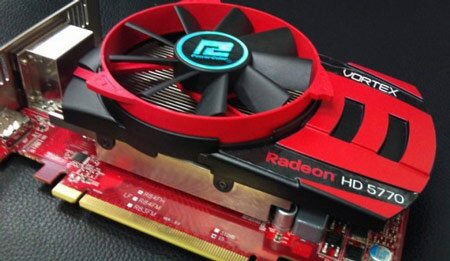 Отдаляя вентилятор от радиатора, можно улучшить отвод тепла, уверены в PowerColor. Если условия размещения карты в корпусе ПК позволяют это сделать — почему бы не воспользоваться такой возможностью? При наличии свободного места вентилятор выдвигается, а при его отсутствии система охлаждения по геометрическим размерам и показателям эффективности соответствует обычной. В качестве примера на снимках изображена 3D-карта Radeon HD 5770 с системой охлаждения Vortex. В
