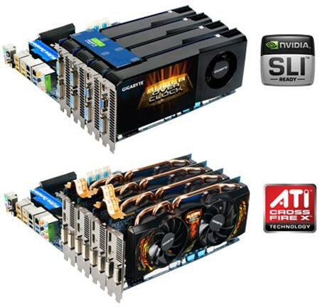Плата поддерживает многопроцессорные графические подсистемы, работающие в конфигурациях 4-Way NVIDIA SLI и ATI CrossFireX. Процессорное гнездо GA-X58A-UD9 готово принять процессор любой процессор Intel в исполнении LGA 1366, включая шестиядерную модель Core i7-980X Extreme Edition.