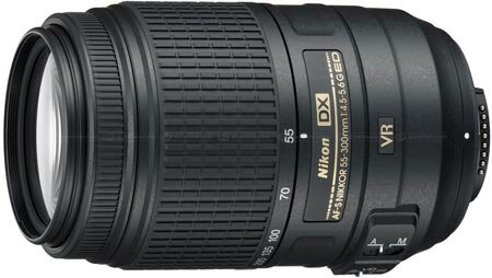 Одновременно с камерой Nikon D3100 был представлен телеобъектив AF-S DX NIKKOR 55-300mm f/4.5-5.6G ED VR с переменным фокусным расстоянием, предназначенный для камер формата APS-C (DX в терминологии Nikon). C учетом кроп-фактора диапазон эквивалентных фокусных расстояний, охватываемых этим оптическим прибором, простирается от 82,5 до 450 мм. По мнению производителя, этот объектив хорошо подходит на роль второго, дополняющего стандартный объектив с фокусным расстоянием 18–55 мм, который обычно приобретается в комплекте с камерой. Большое значение максимального фокусного расстояния позволяет снимать удаленные объекты, к которым невозможно приблизиться, и строить кадры с характерной «сжатой» перспективой. Наличие оптического стабилизатора второго поколения облегчает получение резких снимков при съемке с рук. При этом изделие получилось легким и компактным. В объективе используется бесшумный ультразвуковой мотор, элементы из стекла ED и нового стекла HRI с высоким коэффициентом преломления, что способствует получению резких изображений даже в сложных условиях освещения.